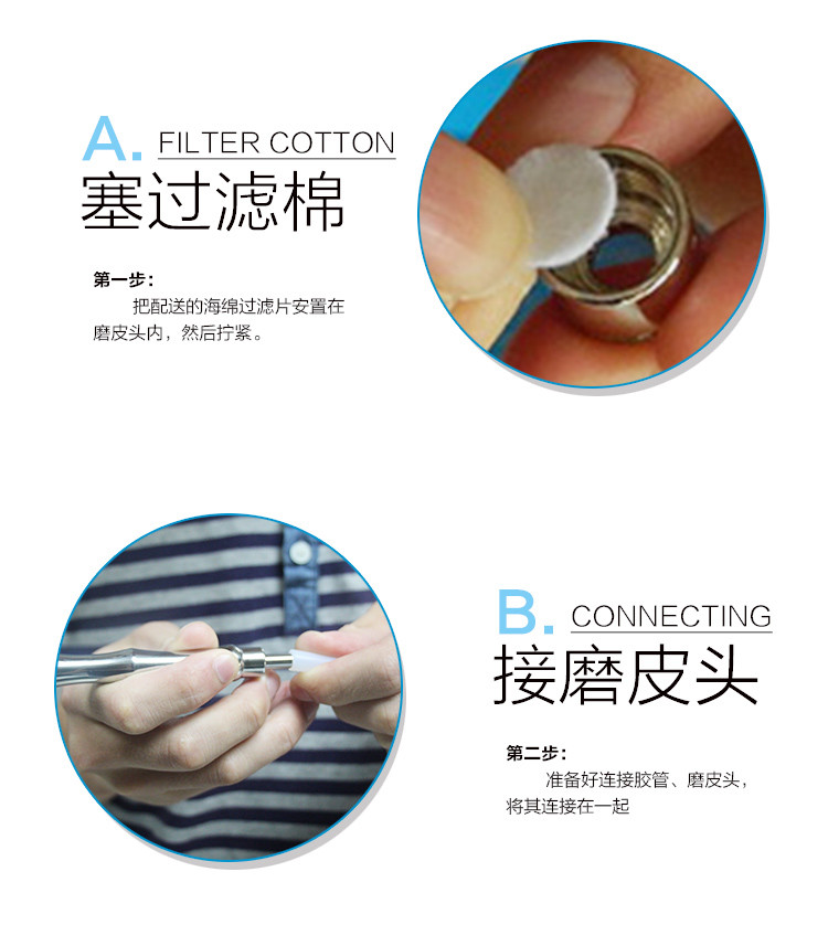 1. Τοποθετήστε το διανεμημένο φίλτρο σφουγγαριών στο αλέθοντας κεφάλι, κατόπιν βίδα αυτό σφιχτά