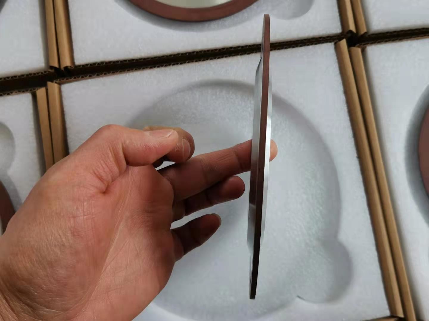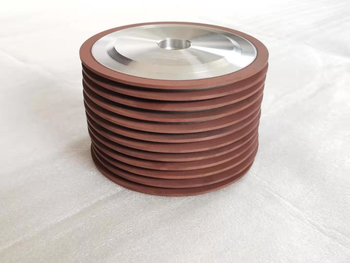 Για τους τροχούς κοπής διαμαντιών, το στρώμα εργασίας του τροχού άλεσης περιέχει κόκκους διαμαντιών και τα διαμαντινά αθραυστικά συνδέονται με το υπόστρωμα με ένα μεταλλικό δεσμό.το πάχος του αποθεματισμένου μεταλλικού δεσμού είναι 20% του ύψους των κόκκων του διαμαντιού (αμμοποίηση), και στη συνέχεια ο μεταλλικός δεσμός χρησιμοποιείται για να συνδέσει (παχύνει) τα κόκκους των διαμαντιών, και το πάχος είναι περίπου 2/3 του ύψους των κόκκων των διαμαντιών.με κινητήρα άνω των 50 kVA.