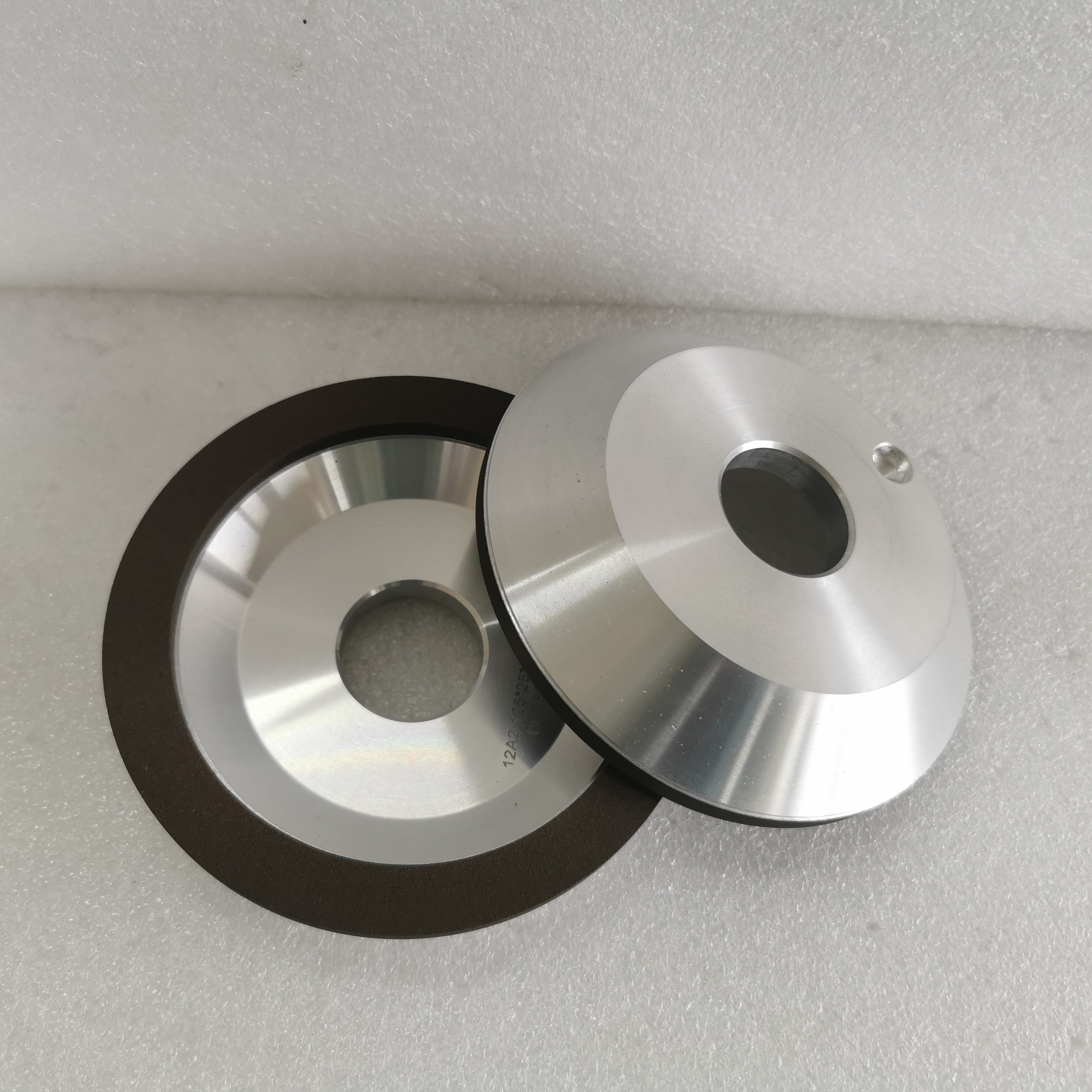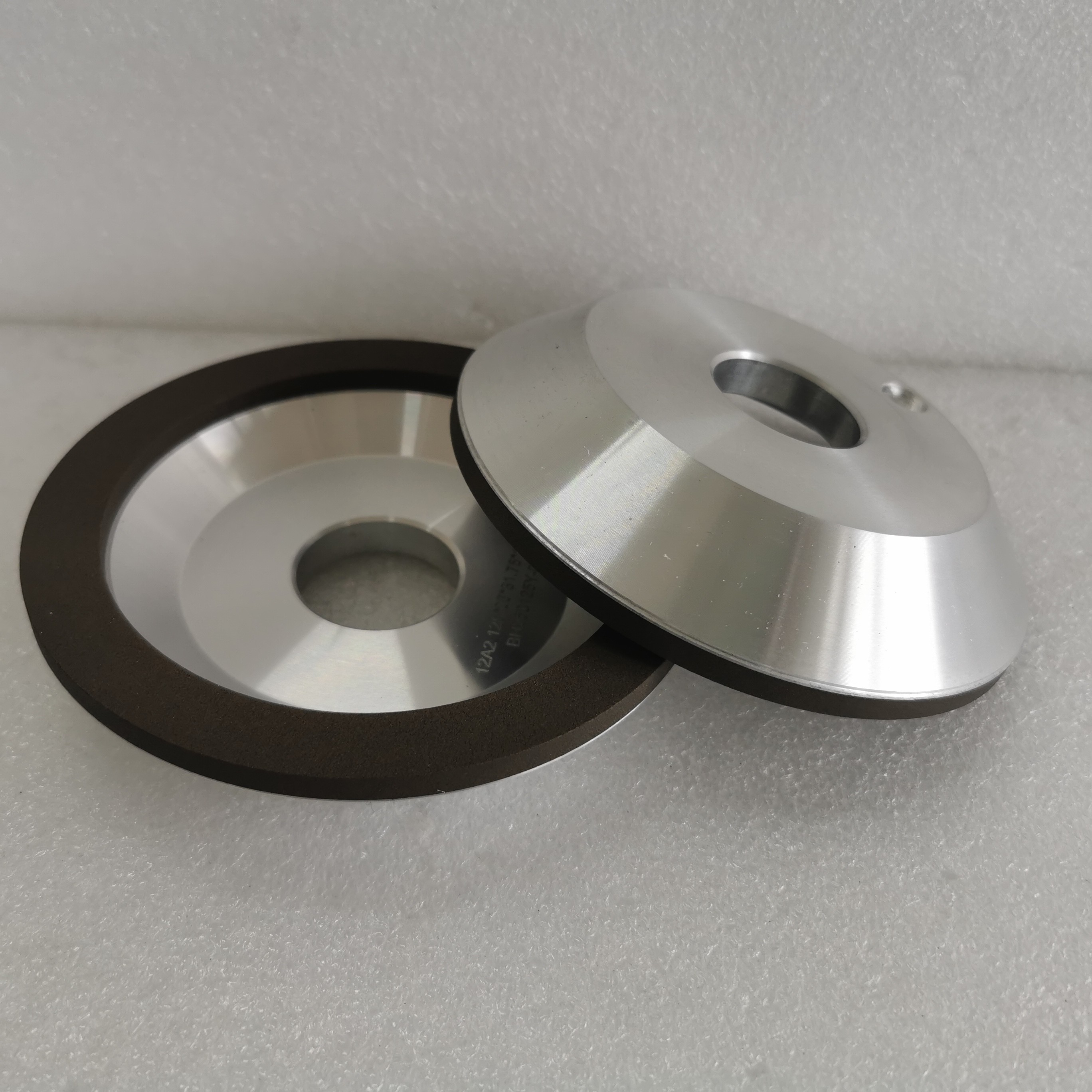Συνδετικό:Συνήθως χρησιμοποιούνται φαινολική ρητίνη, εποξική ρητίνη ή πολυαμίδιο, τα οποία παρέχουν ελαστικότητα και χαμηλή θερμοκρασία σκληρύνωσης (αποφεύγοντας θερμική βλάβη στο διαμάντι).